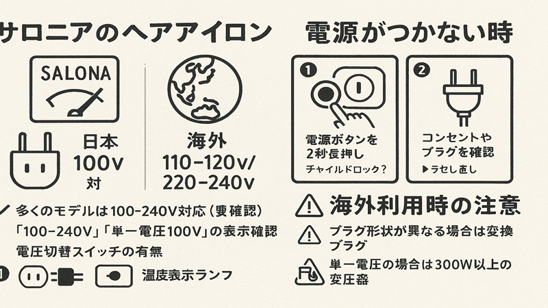 「サロニア ヘアアイロン 電圧 電源つかない」で検索したとき、多くの方がまず気になるのは故障か設定かの切り分けです。