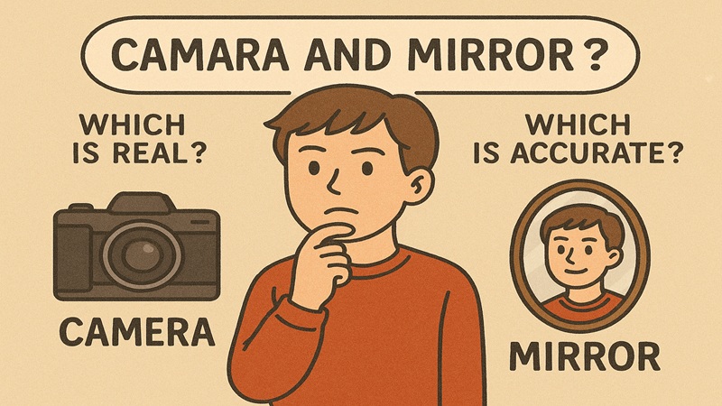 カメラは左右が反転していない、他人から見た自分に近い「客観の顔」。役割が違うだけで、どちらか一方が偽物という話ではありません。