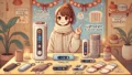 iPhone16の設定画面で充電上限スライダー(80%〜100%)を調整する日本人ユーザーのイラスト。バッテリー劣化を防ぐためのスマート充電が視覚的に表現され、静かで落ち着いた日本のテック環境が背景に描かれている。